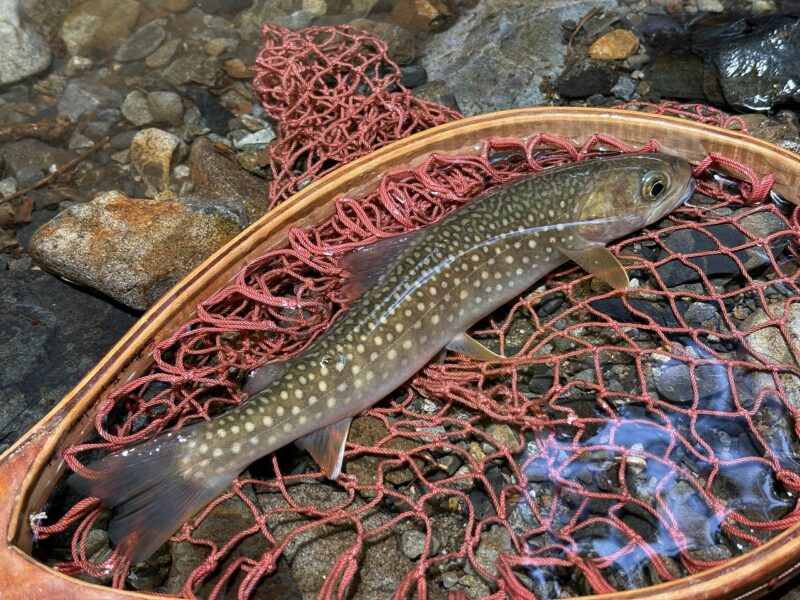 釣りをしてもらいすぐにイワナを釣ってもらいました!こんなきれいなイワナが都内からほど近い小菅川で釣れることもびっくりです。小菅川は釣り人も多い川なのですがキャッチ&リリースをする人の割合が多いということなのでしょうか。持ち帰りの匹数を5尾と制限している効果もあるようです。近場でこんなきれいなイワナが釣れる環境、この先も維持されるといいですよね。