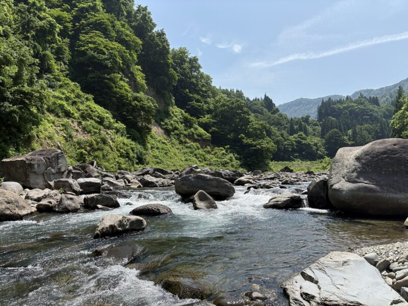 6月29日、この日は1人で釣ったことのない場所へ様子見、新規釣り場の開拓って感じです。取材などで使える釣り場は常に探しているので、予定が空いた日は初めての場所へ行くことが多くなります。今回は新潟県の本流です。結果としては厳しい釣りでしたが、引き出しは一つ増えた感じです。とにかく本流は解放感があって気分がイイ!絶景とイワナに癒された釣行でした。