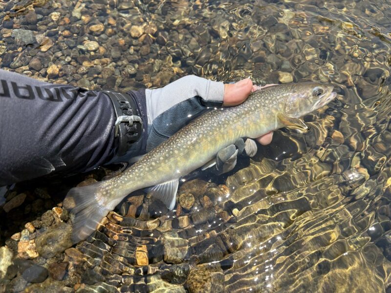 最初の2尾は小さかったのですが、後に続いて5尾は8寸~なき尺までのサイズでした。アワセ切れしたやつもそれなりのサイズだったと思います。やはり本流だけあって数はあまりでませんでしたがサイズは良かったです。もう少し良い時期にこれれば尺イワナも普通に混じりそうですね。