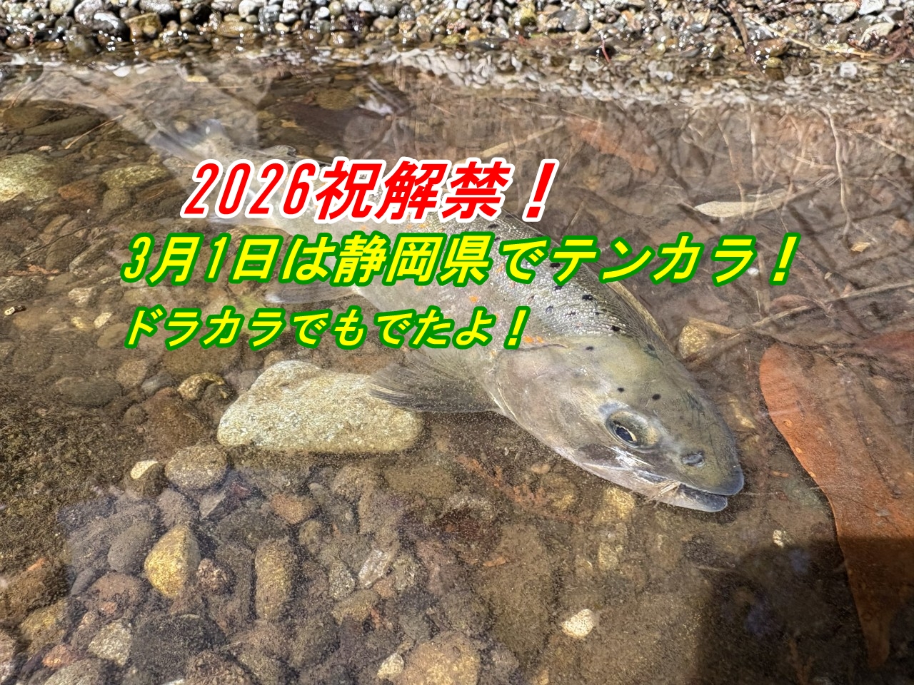 2026年3月1日、祝!解禁ですね。今年の解禁日は前日に富士宮でちょっと遅めの新年会に参加していたため、その近所の川で迎えることになりました!当然朝は起きてみんなと朝ごはんをゆっくりいただき、のんびりと出発したわけです。竿を出したのは10時を回ったころで、一足遅い釣りはじめとなりました。それでも放流された元気なアマゴたちはシマノ渓流テンカラをよく曲げてくれ、満足感のある釣りができました!